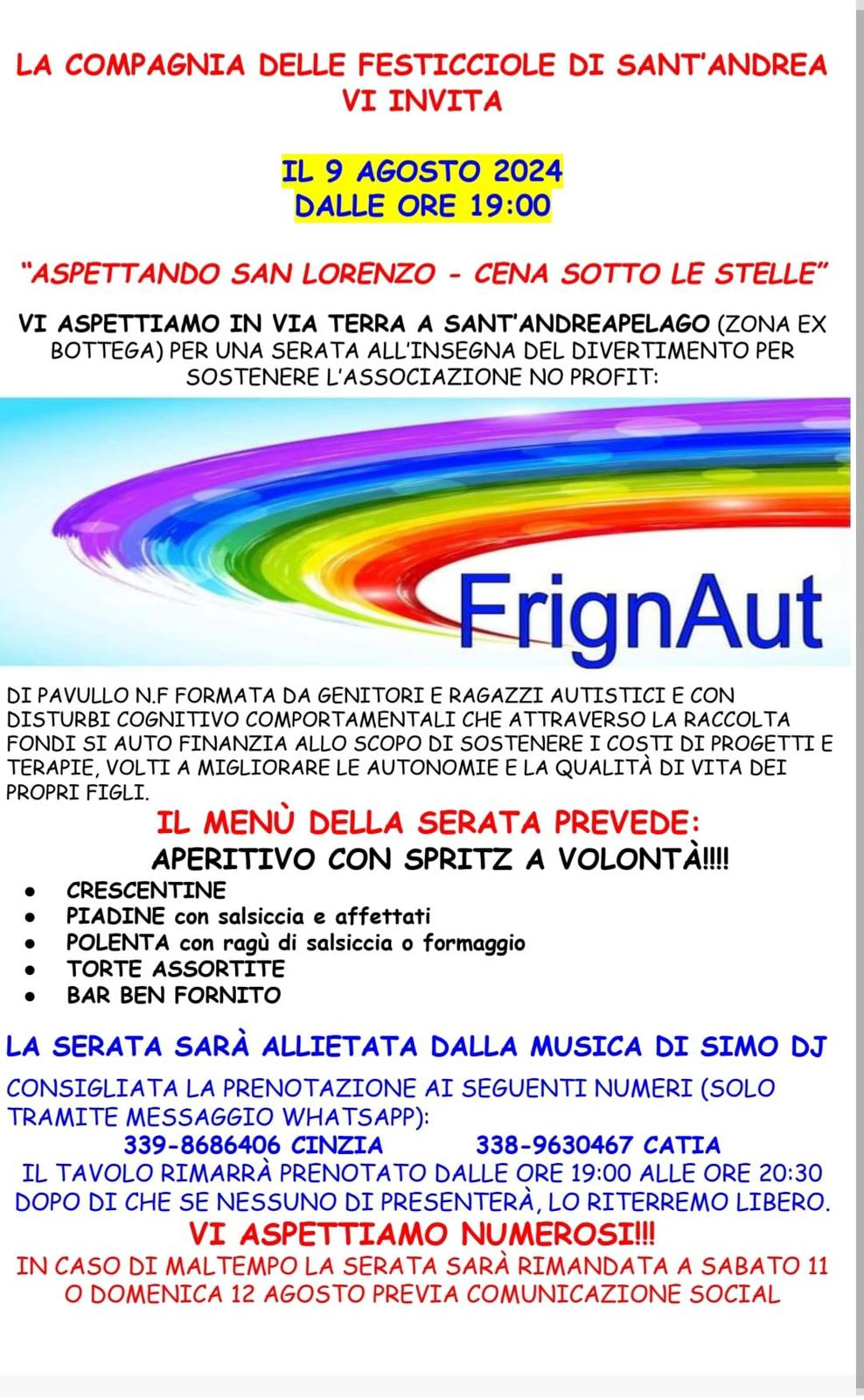 L’intero ricavato della serata sarà devoluto a favore di FRIGNAUT e ASEOP.